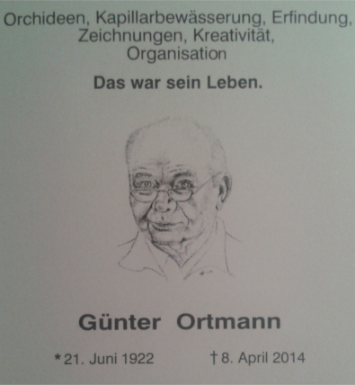 Sein Beruf als Maschinenanbau-Ingenieur ließ nicht mehr viel Zeit übrig um das Hobby "Blumen & Pflanzen" zu genießen. Herr G. Ortmann* (*21.Juni 1922 † 8 April 2014) und seine Frau hatten sich das Kultivieren von Orchideen zu eigen gemacht. Im Laufe der Zeit wurde die Arbeit für das ständige Gießen und kontrollieren in den drei Gewächshäusern jedoch einfach zu viel für beide.